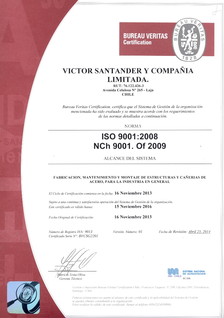 Además certificados bajo la norma ISO 9001:2008
